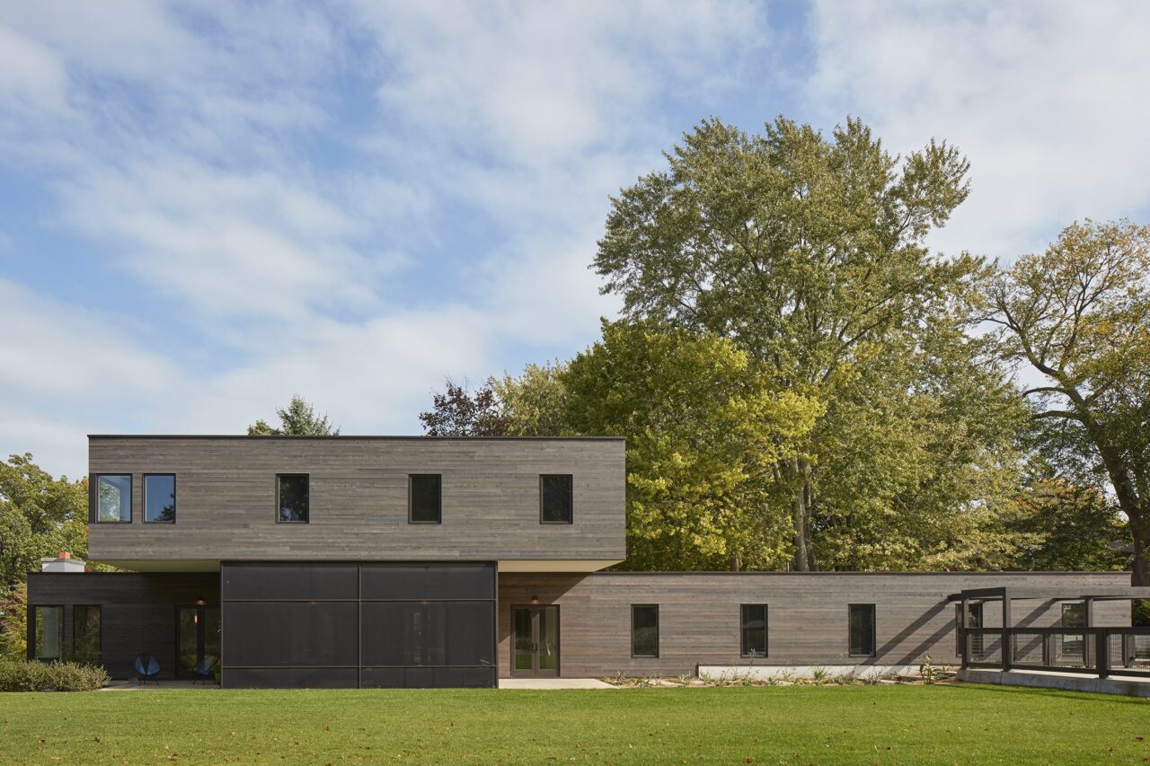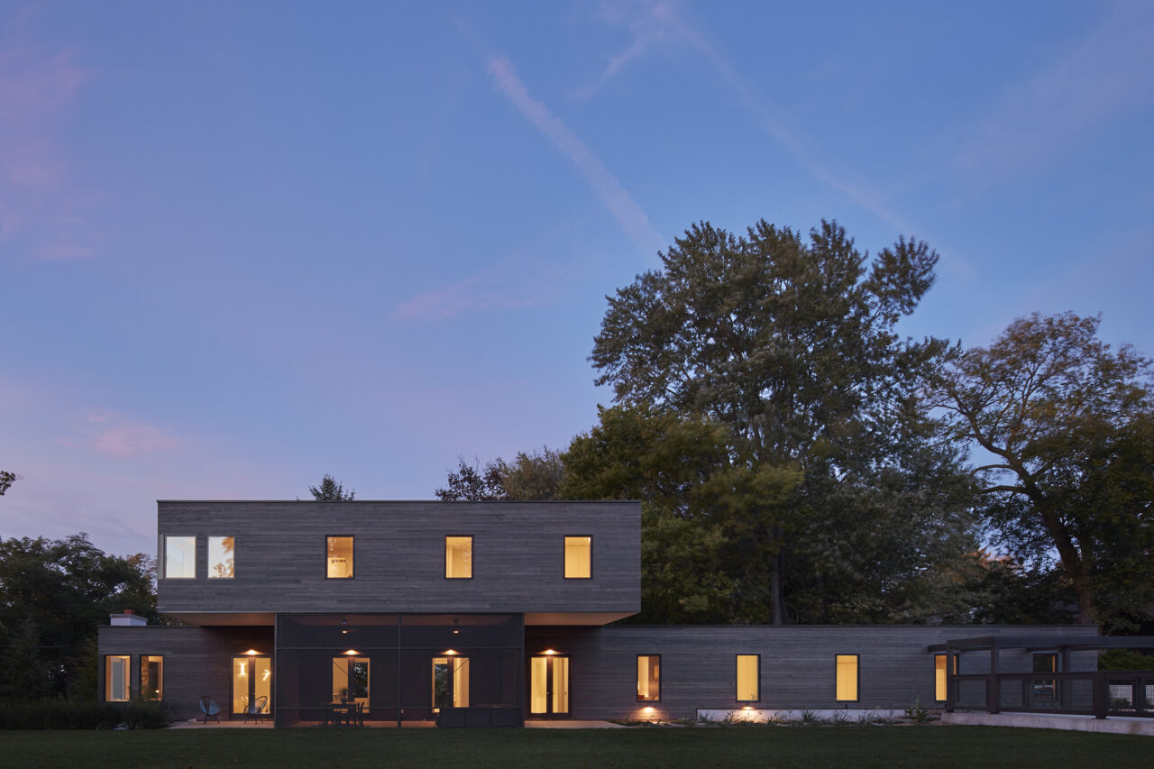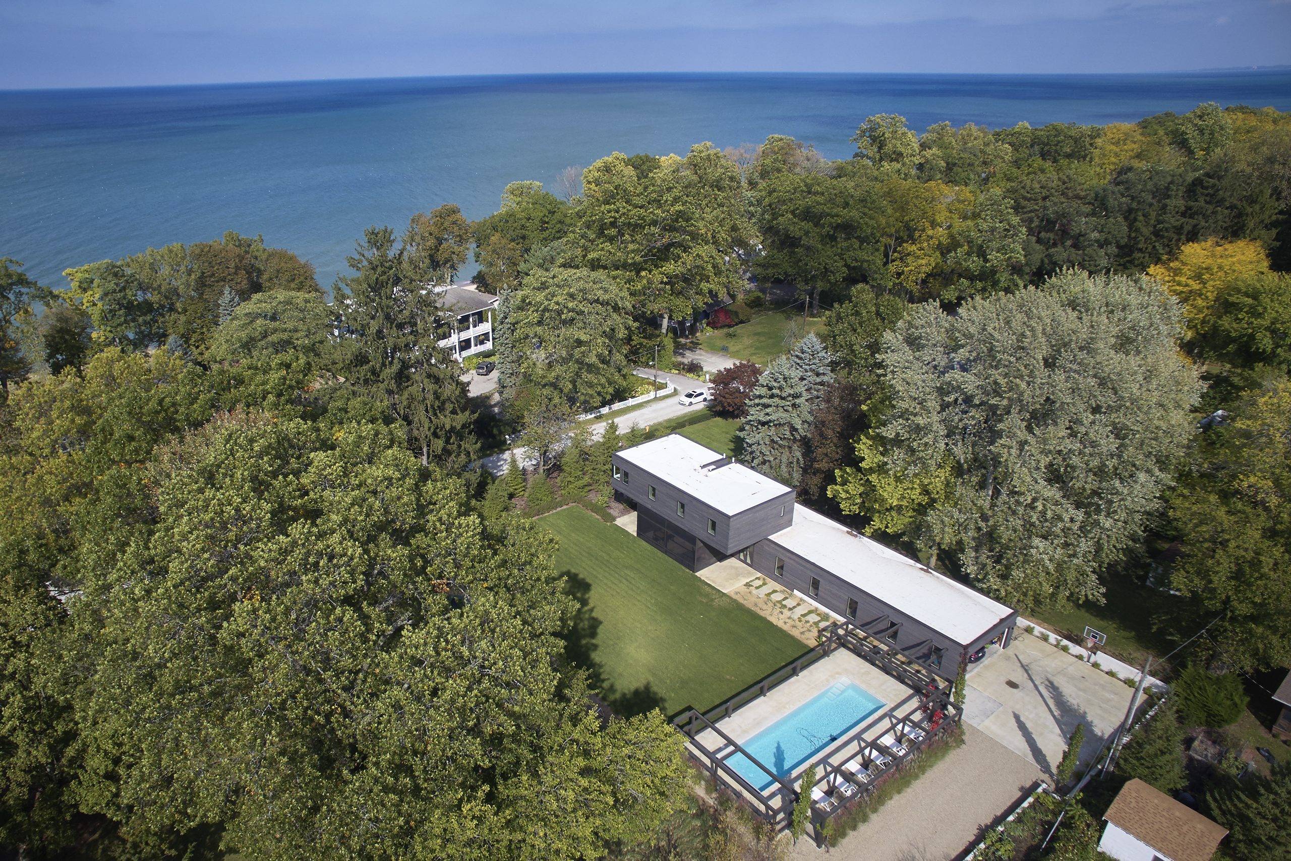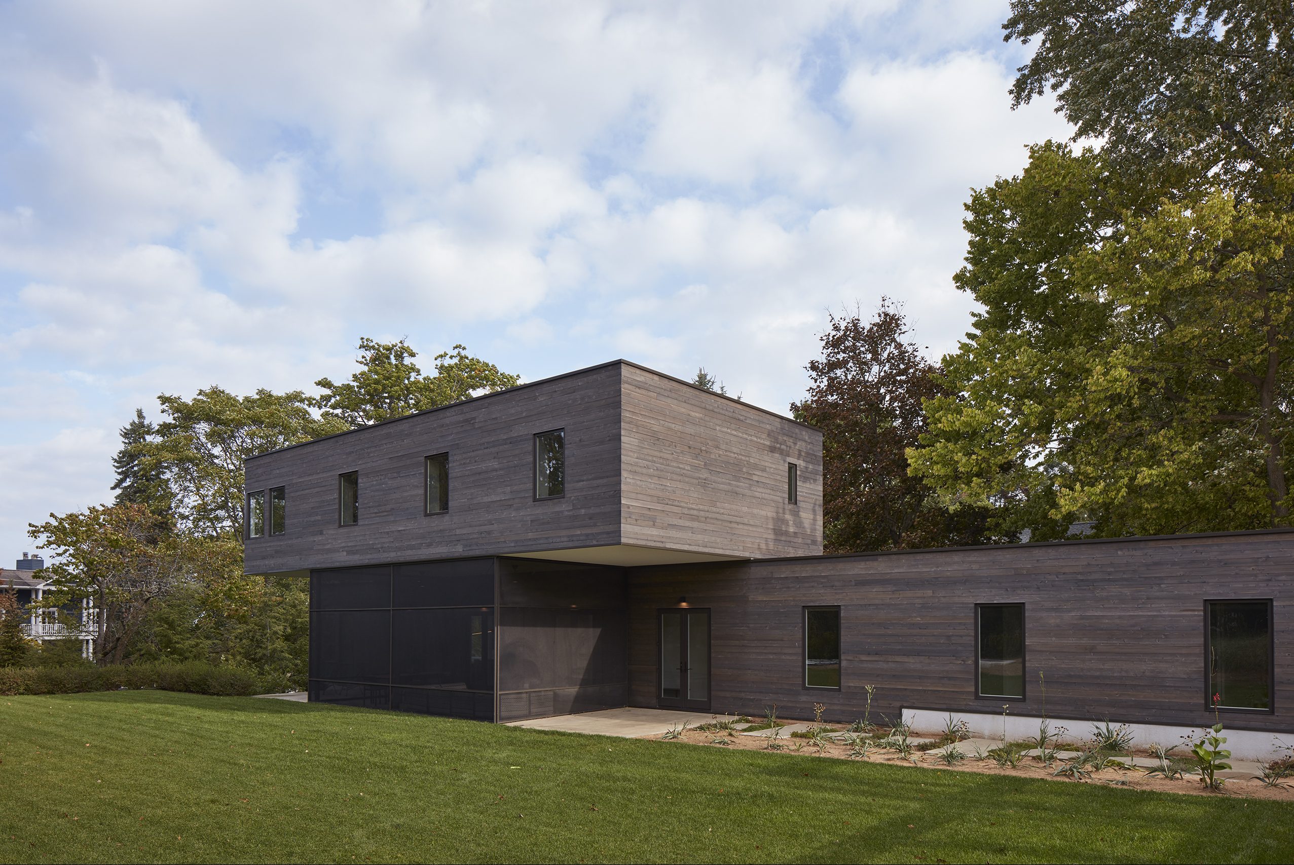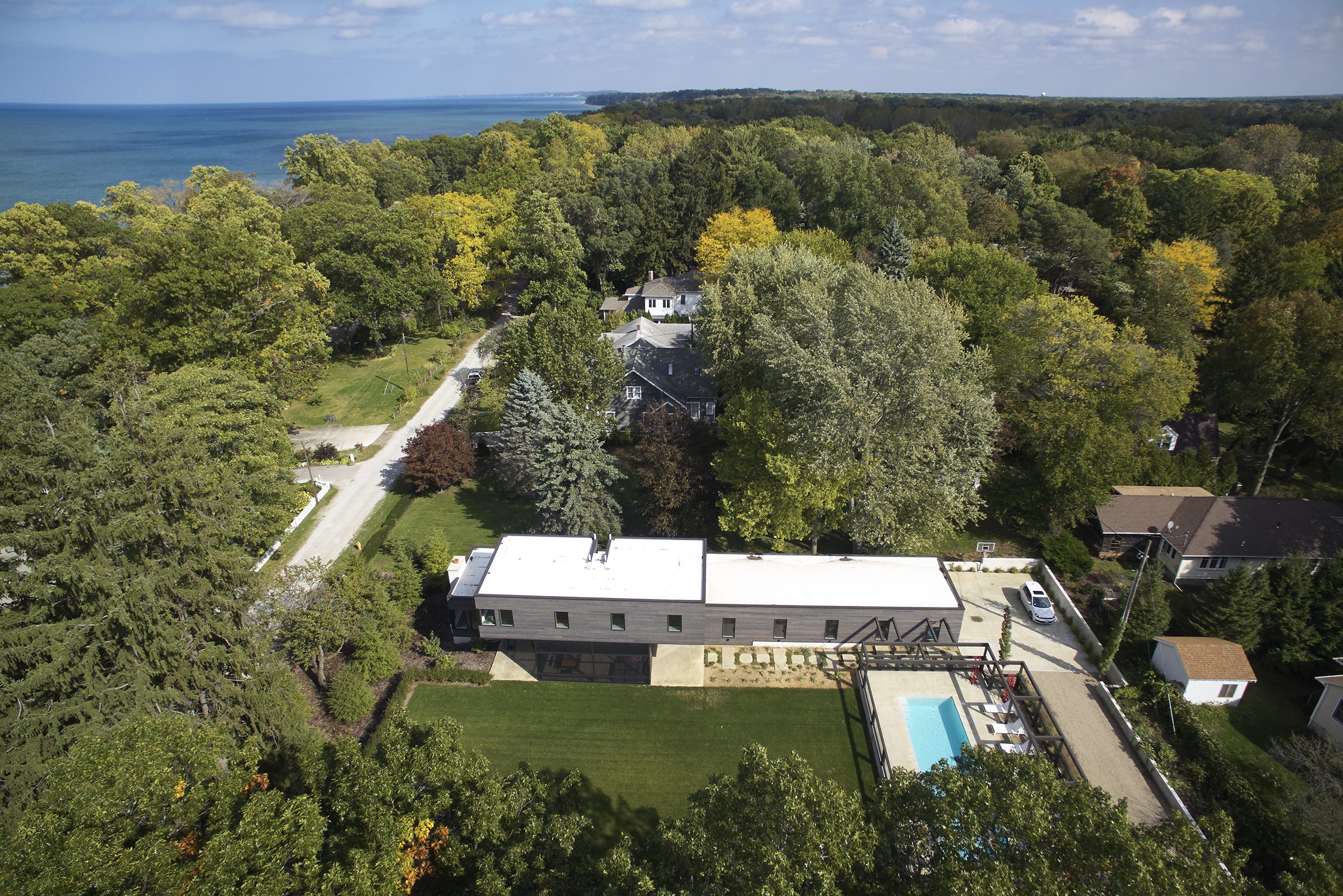 New single family home located in Union Pier, Michigan. The design incorporates a partial second story volume that is cantilevered over a screen porch and overlooks Lake Michigan.