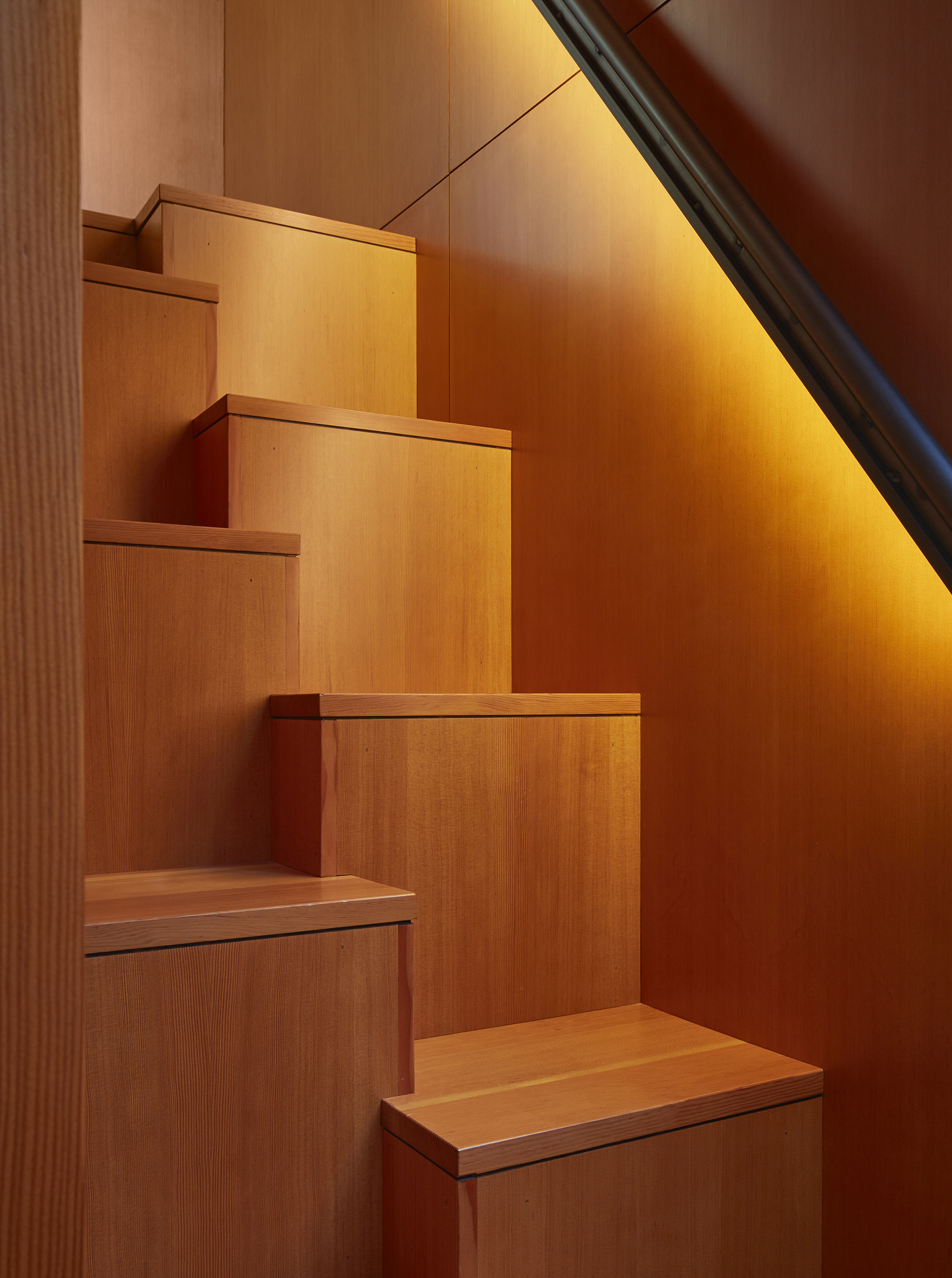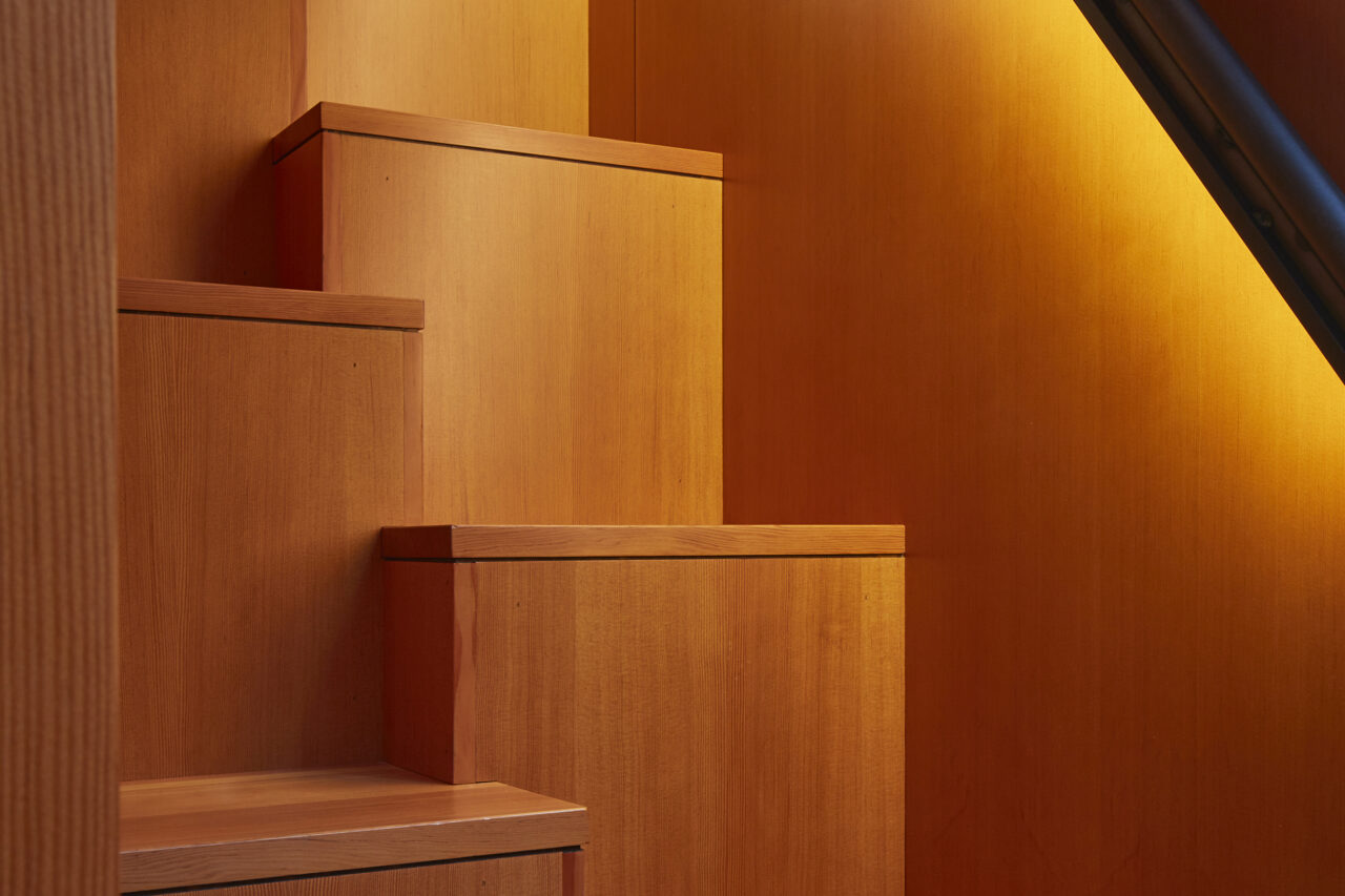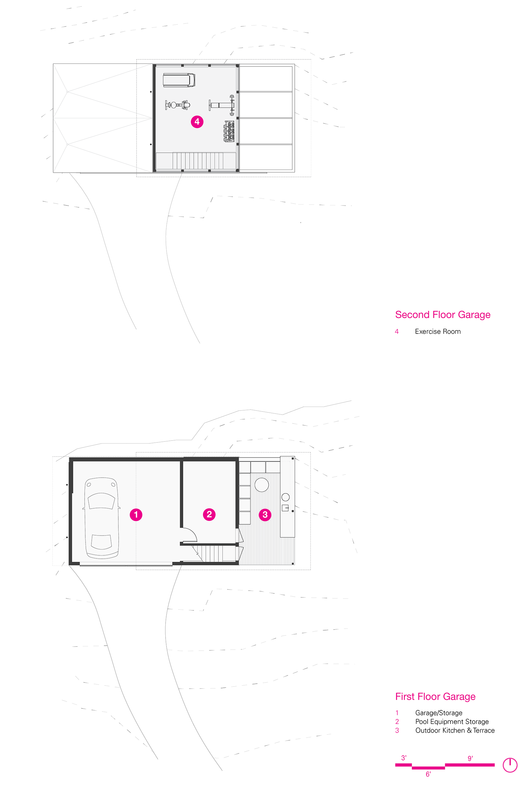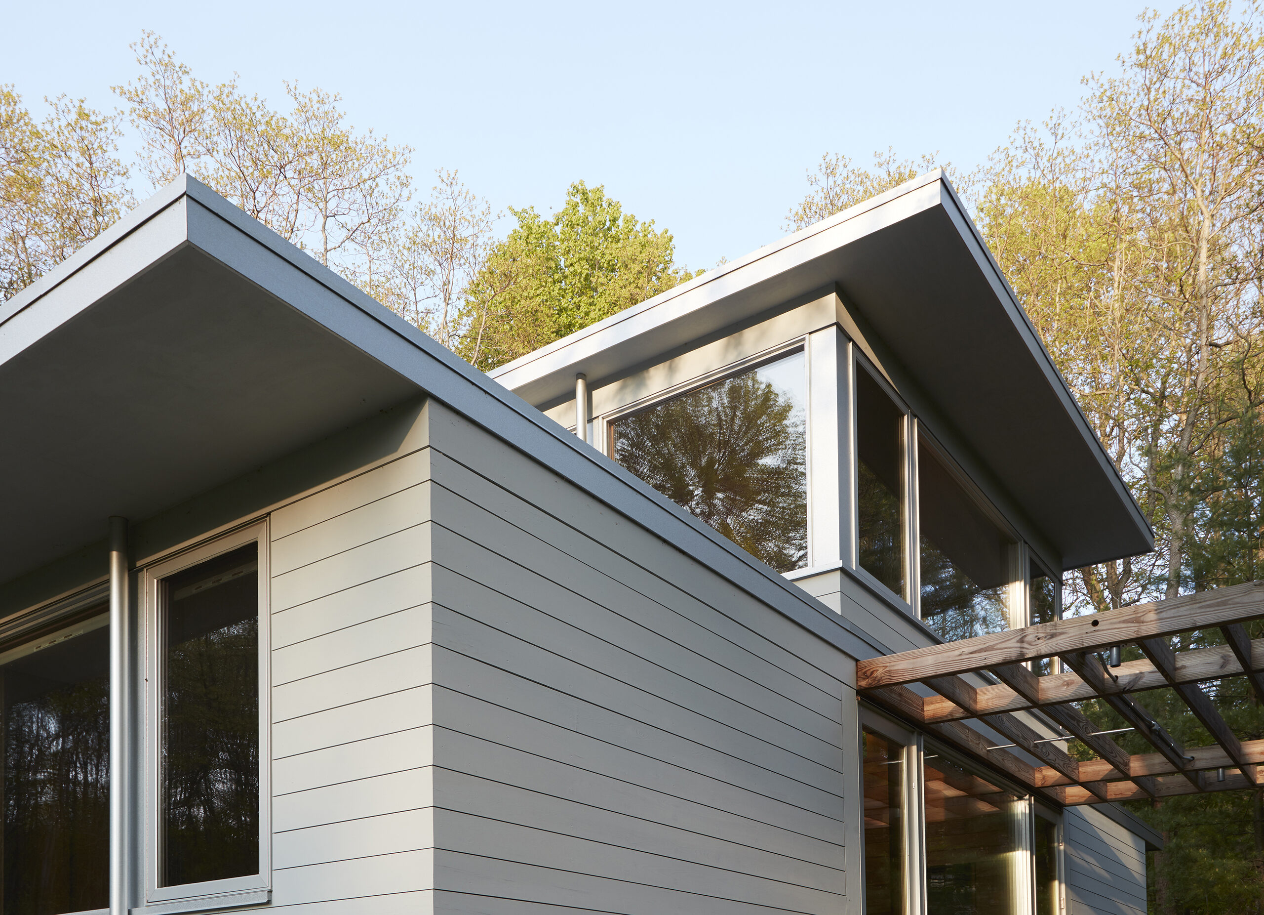 The “just far enough away” Guest House is positioned to contribute to and better frame the family’s exterior social spaces, simultaneously turning and fronting the lake beyond.