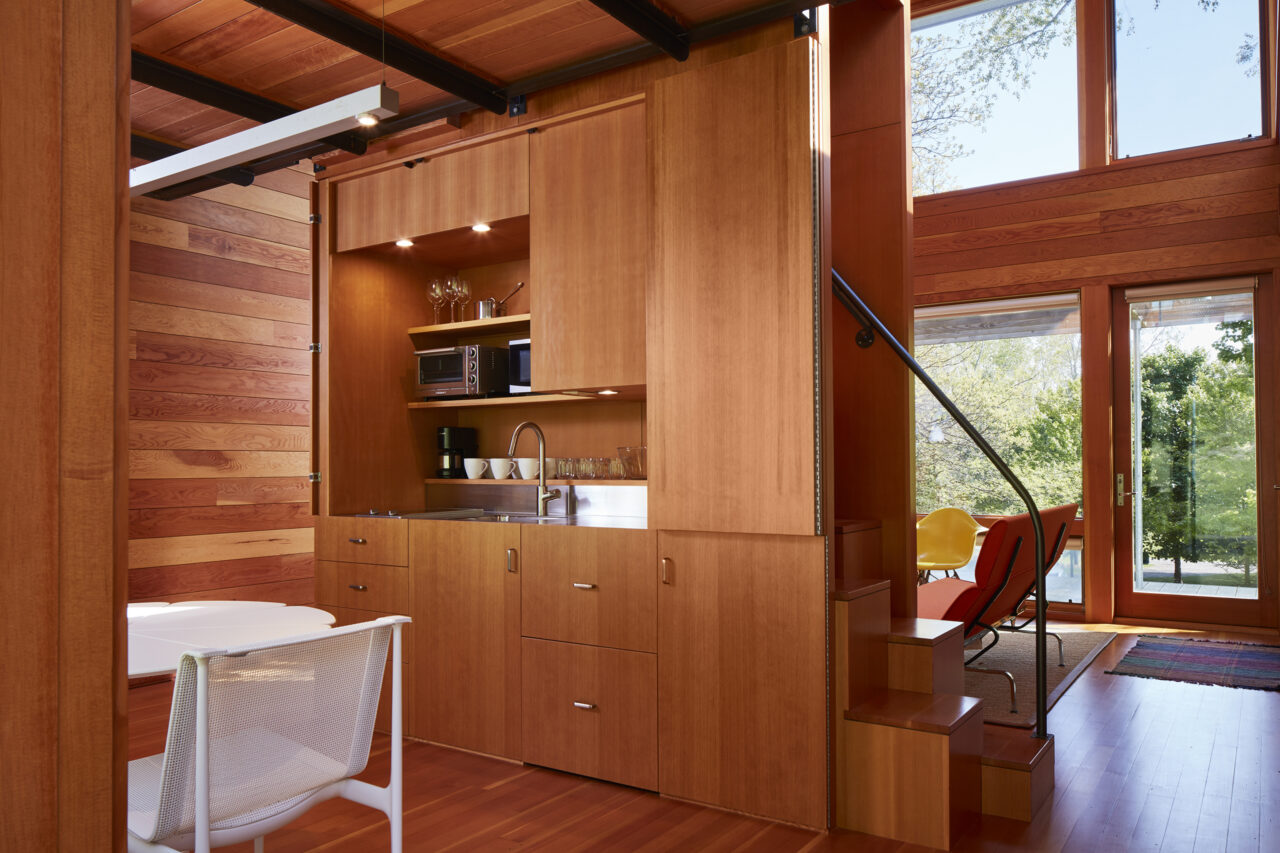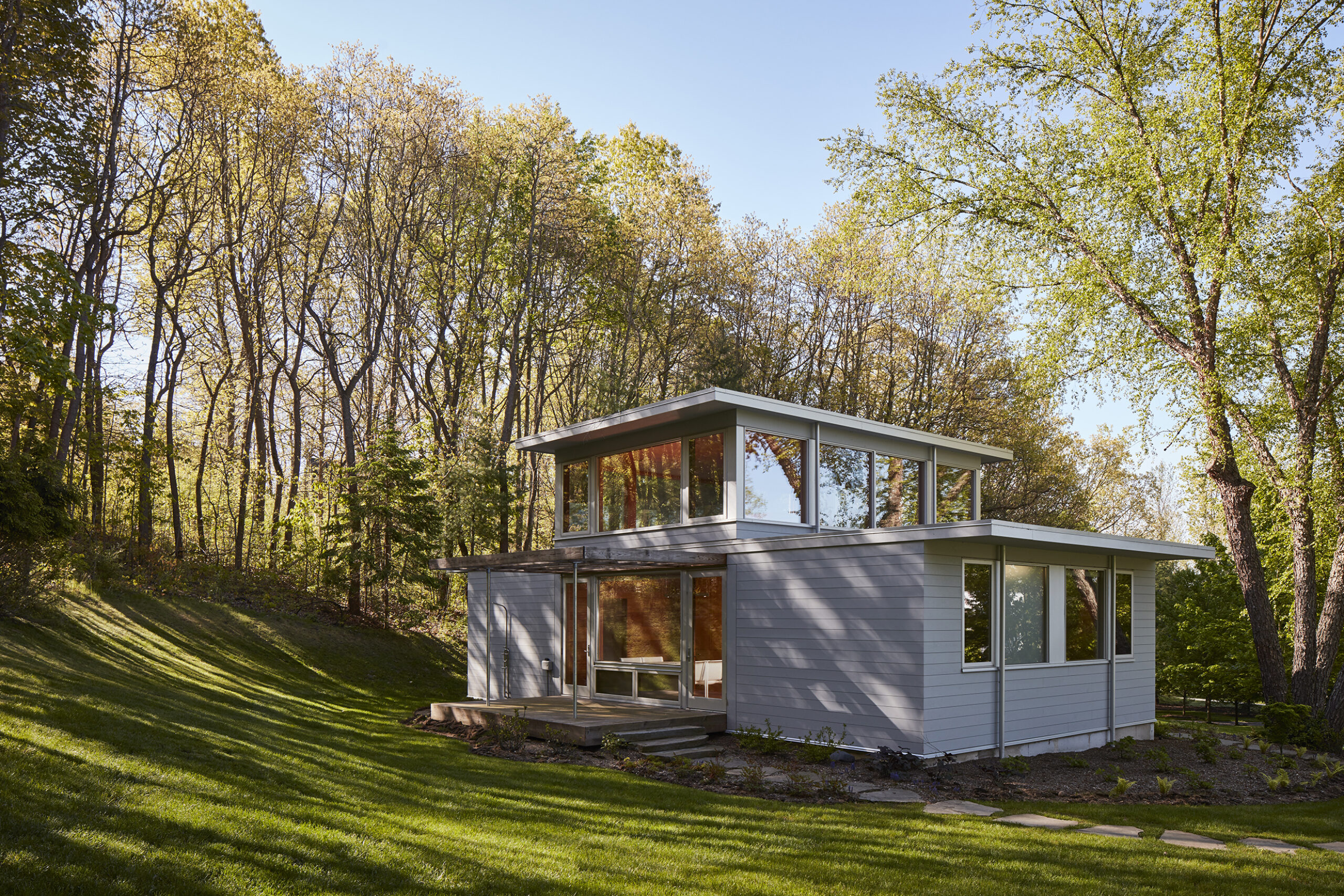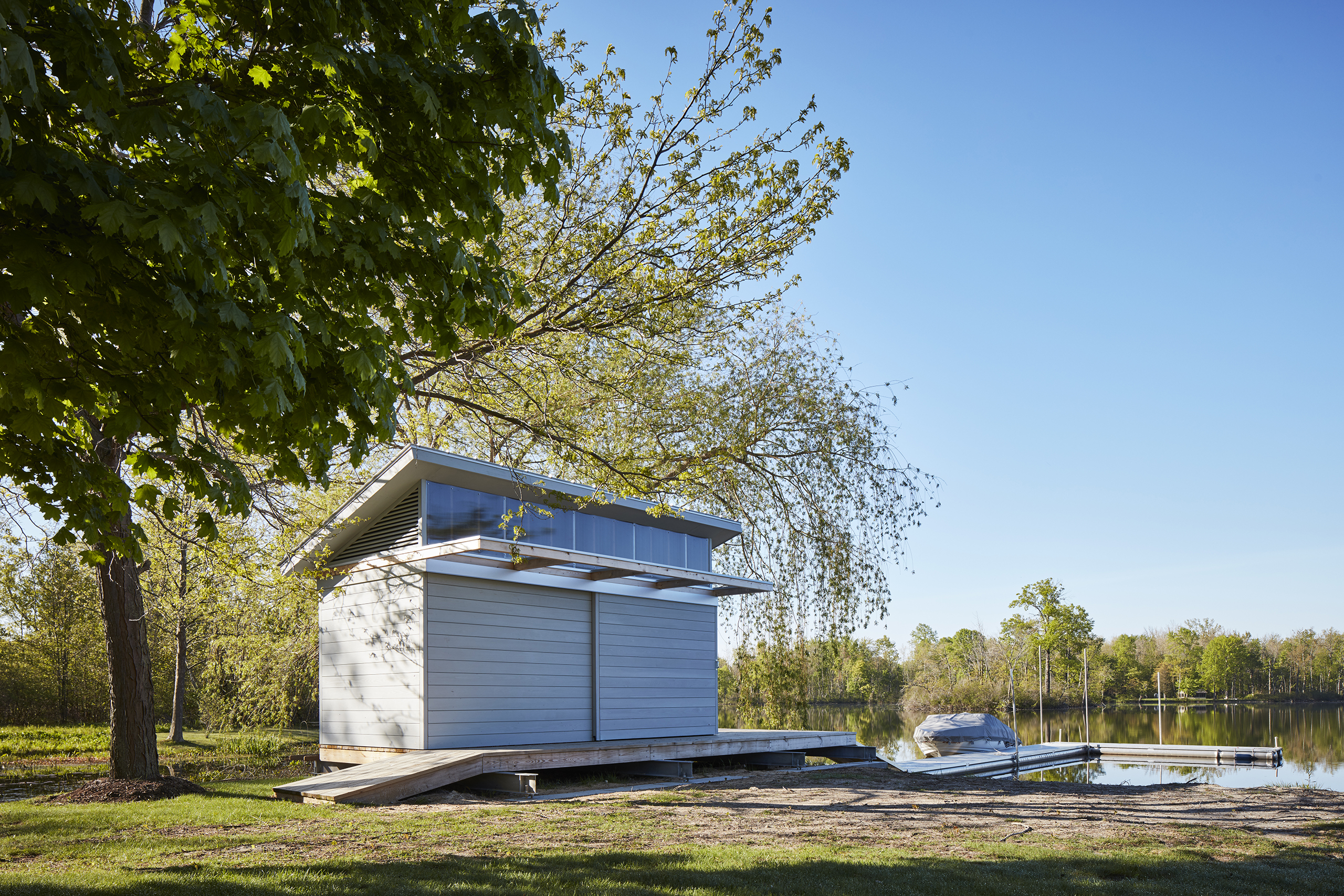 The Upper Jeptha Lake Retreat is the latest addition among the cluster of small buildings that comprise an ever-evolving, beloved family compound on a lake in rural SW Michigan.