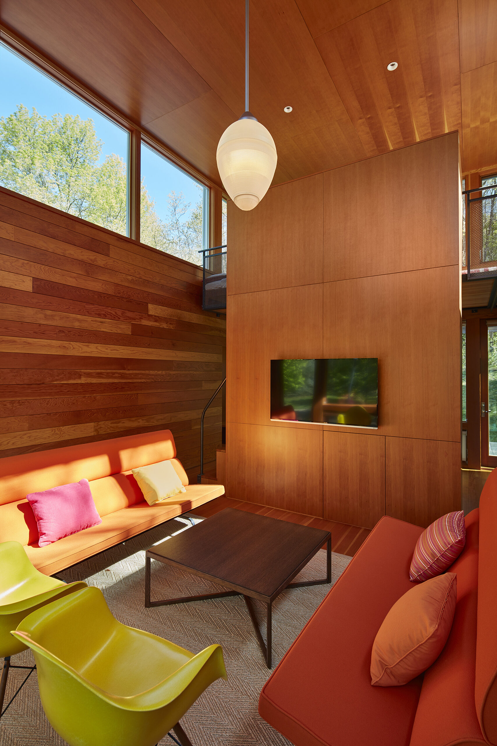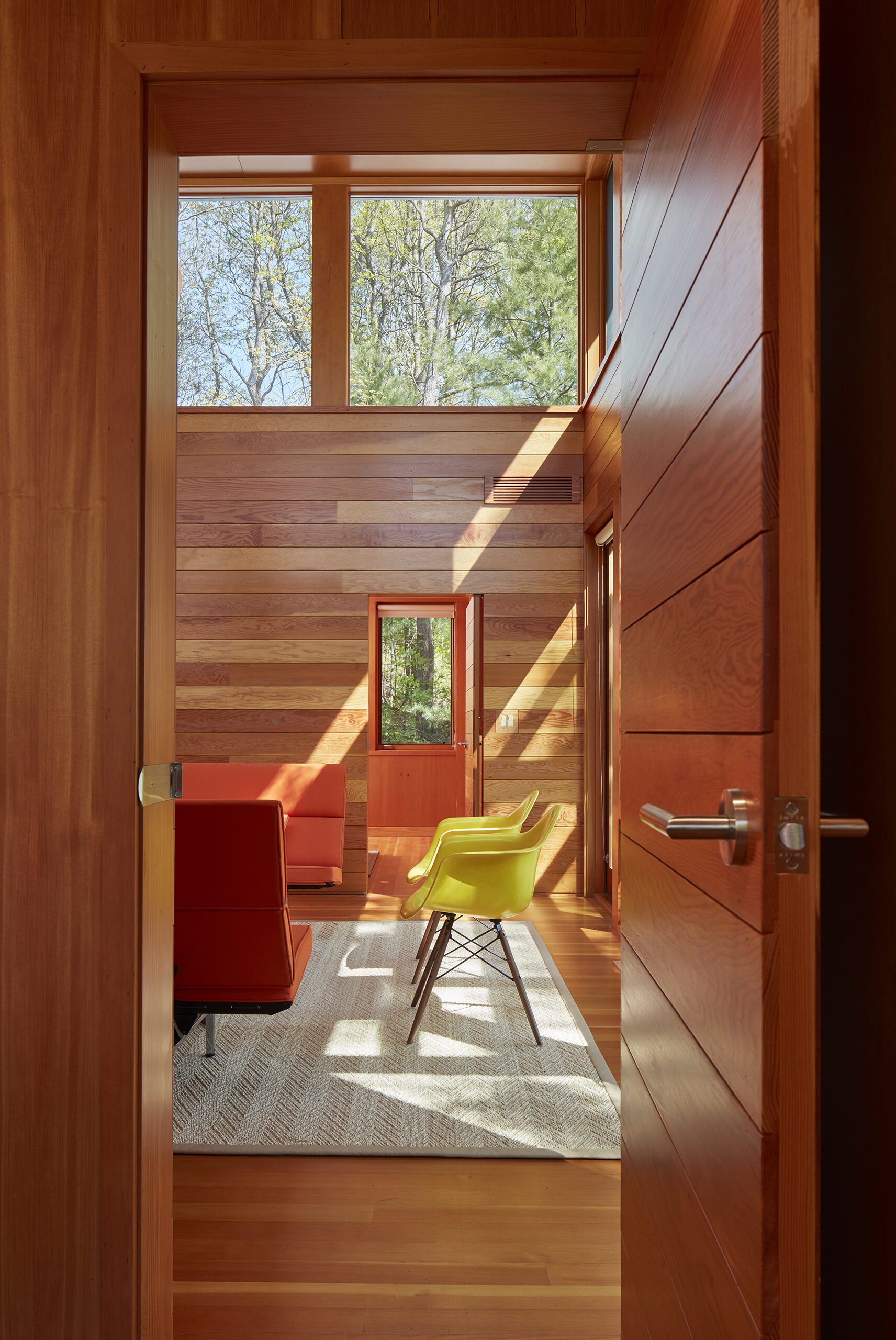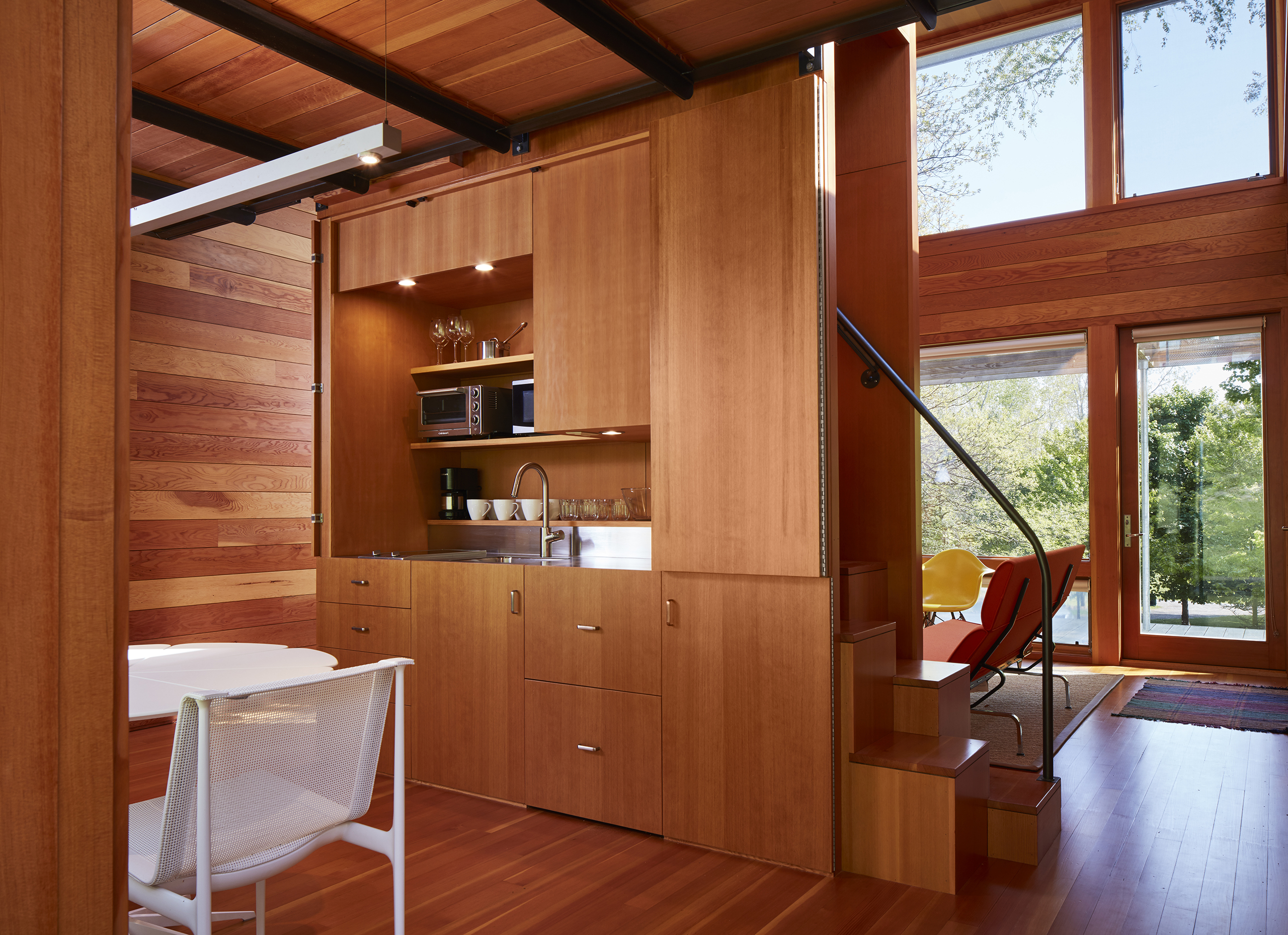 The Upper Jeptha Lake Retreat is the latest addition among the cluster of small buildings that comprise an ever-evolving, beloved family compound on a lake in rural SW Michigan.