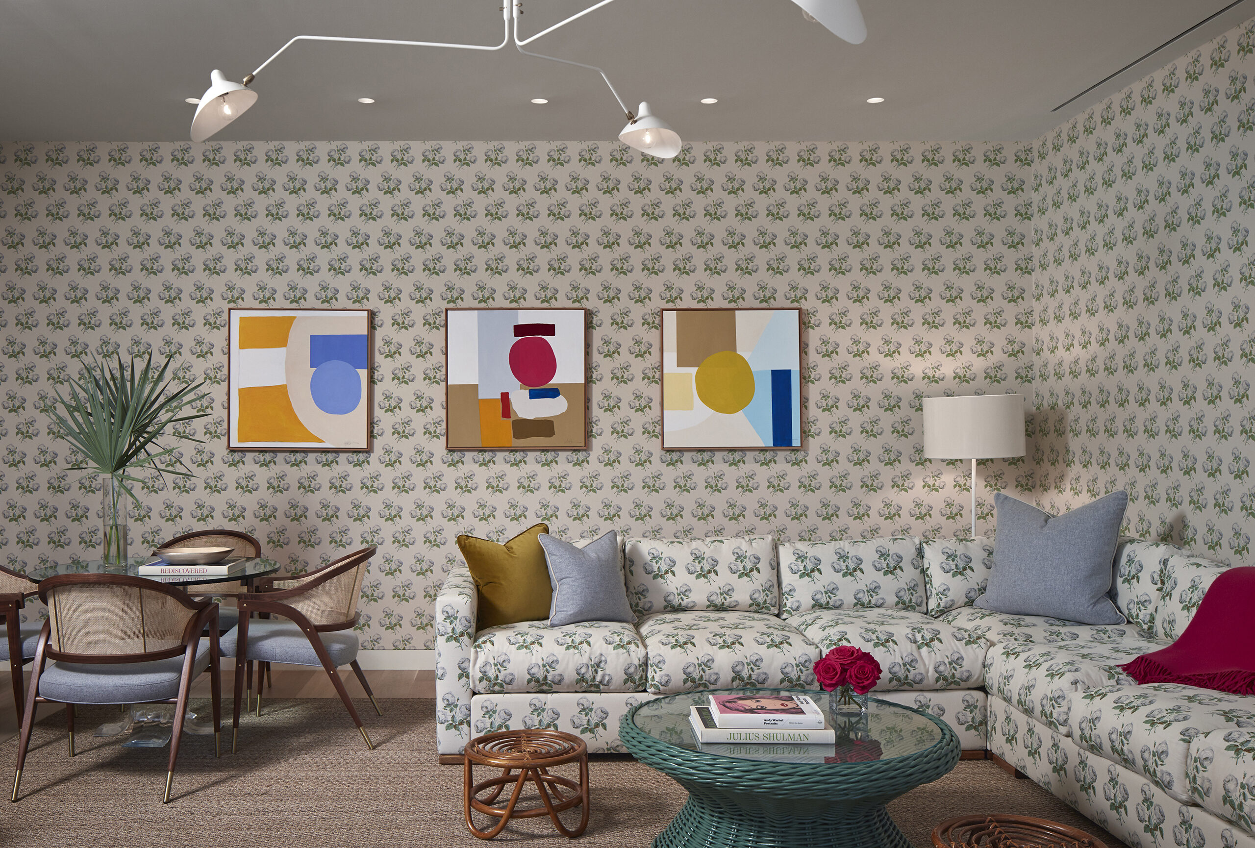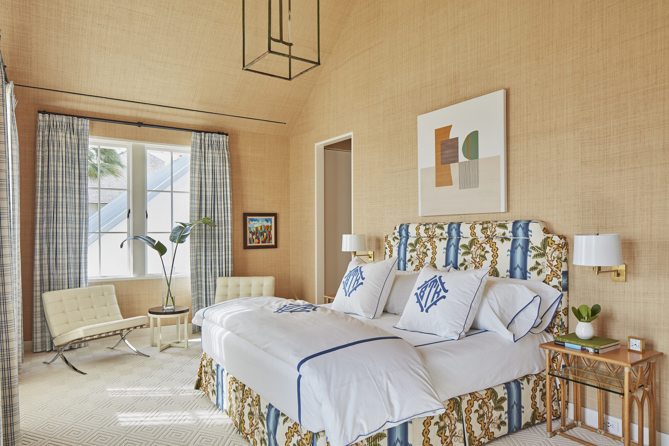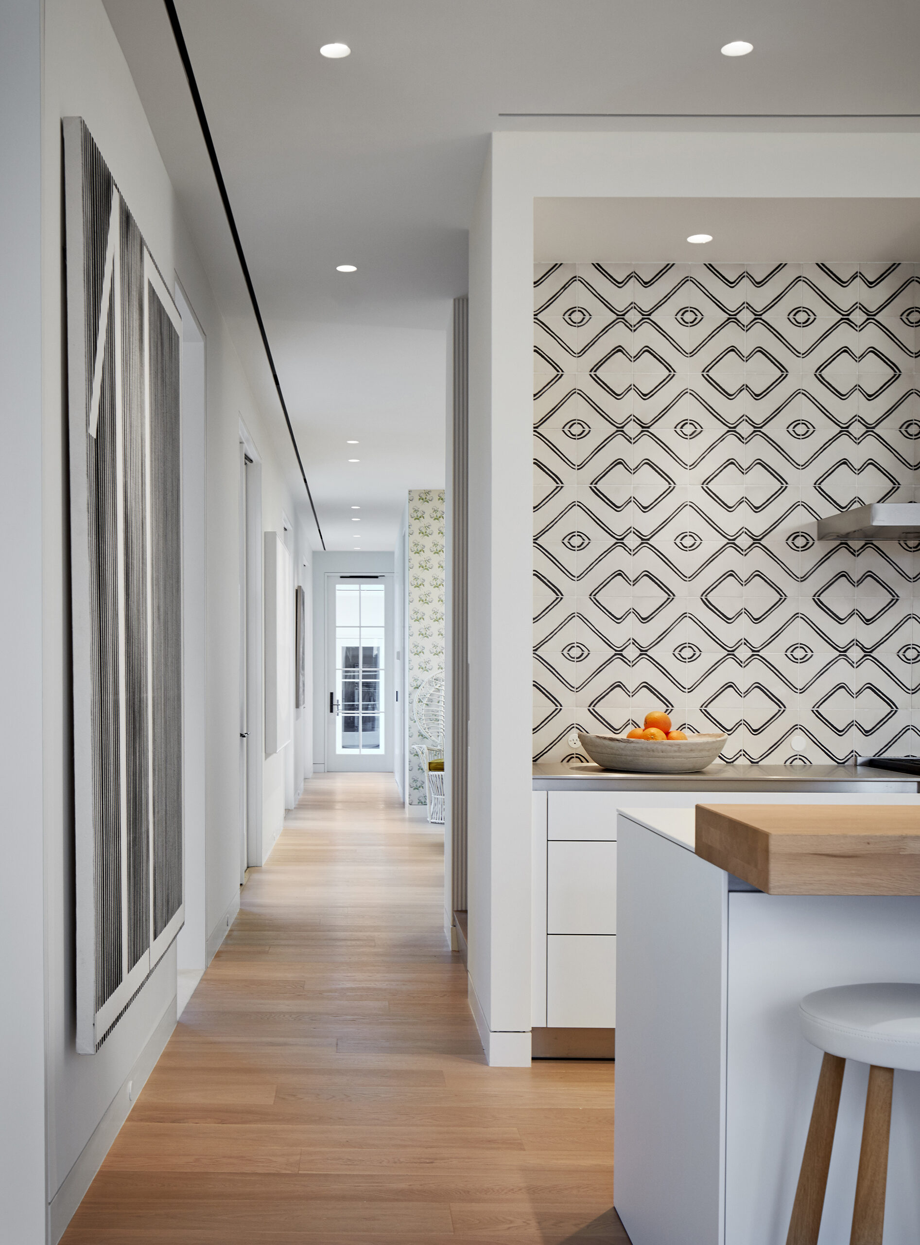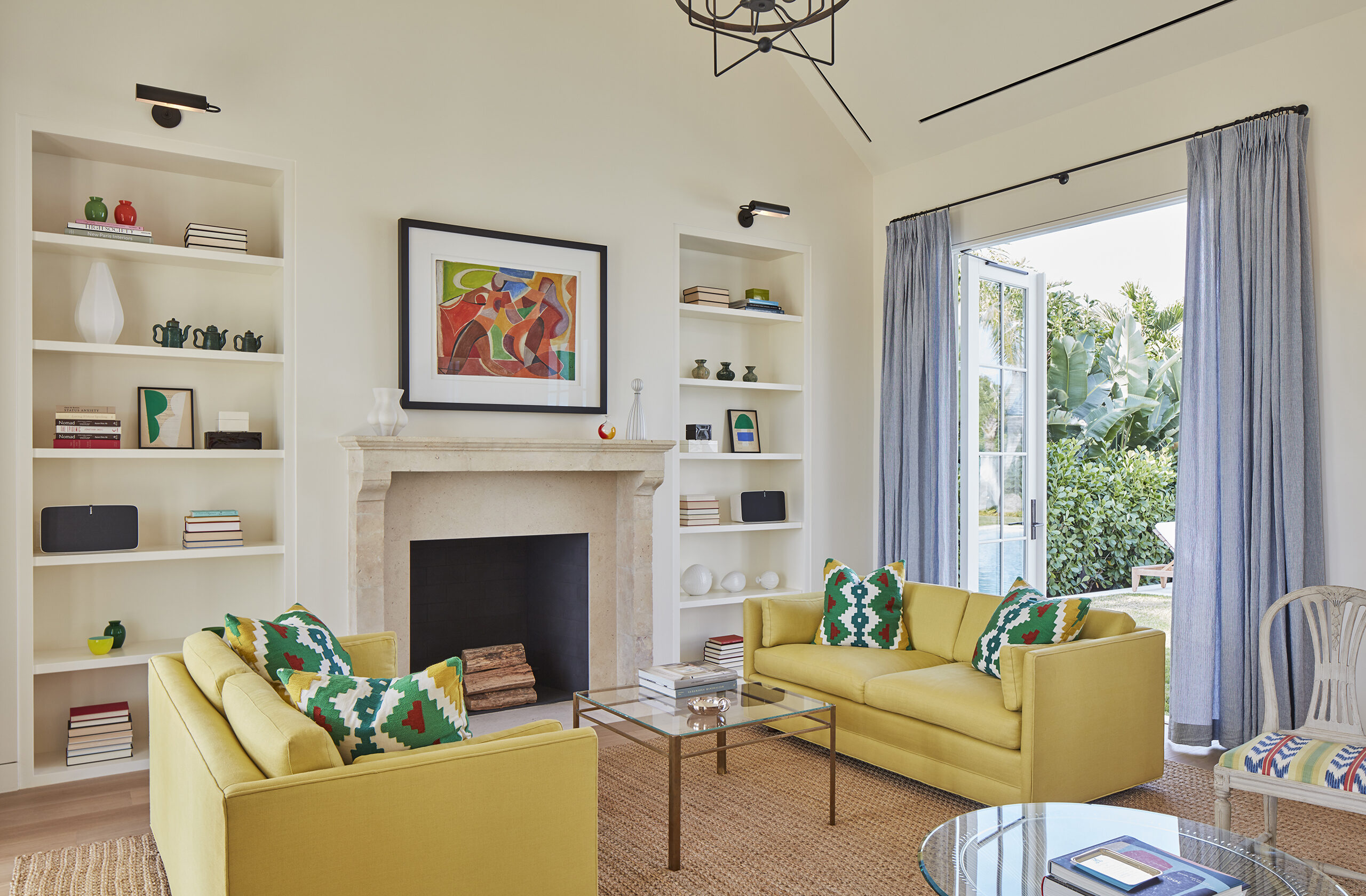 Designed by homeowner and interior designer Britt Taner, the bright interiors draw on the semi-tropical landscape, animating a simple white architectural shell with bold colors and patterns. Beneath a pitched roof, a singular open interior volume frames views to a private courtyard and is flooded with natural light through expansive glazing.