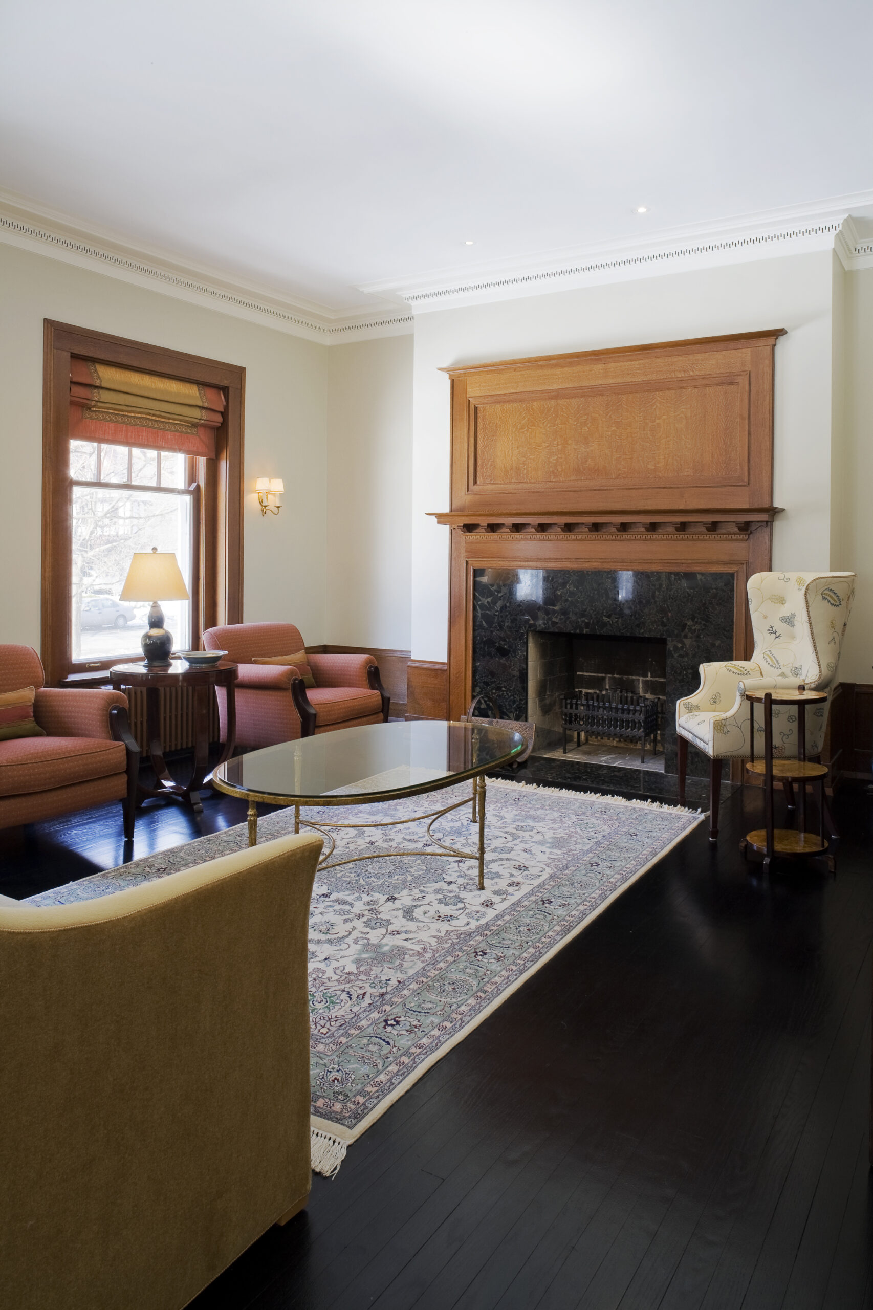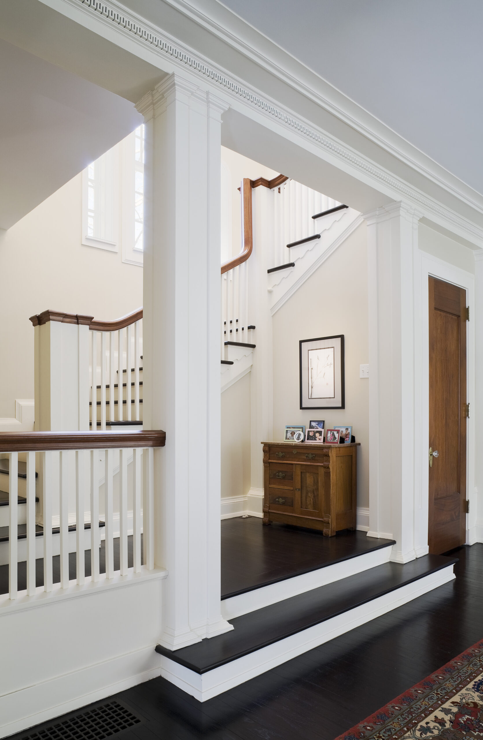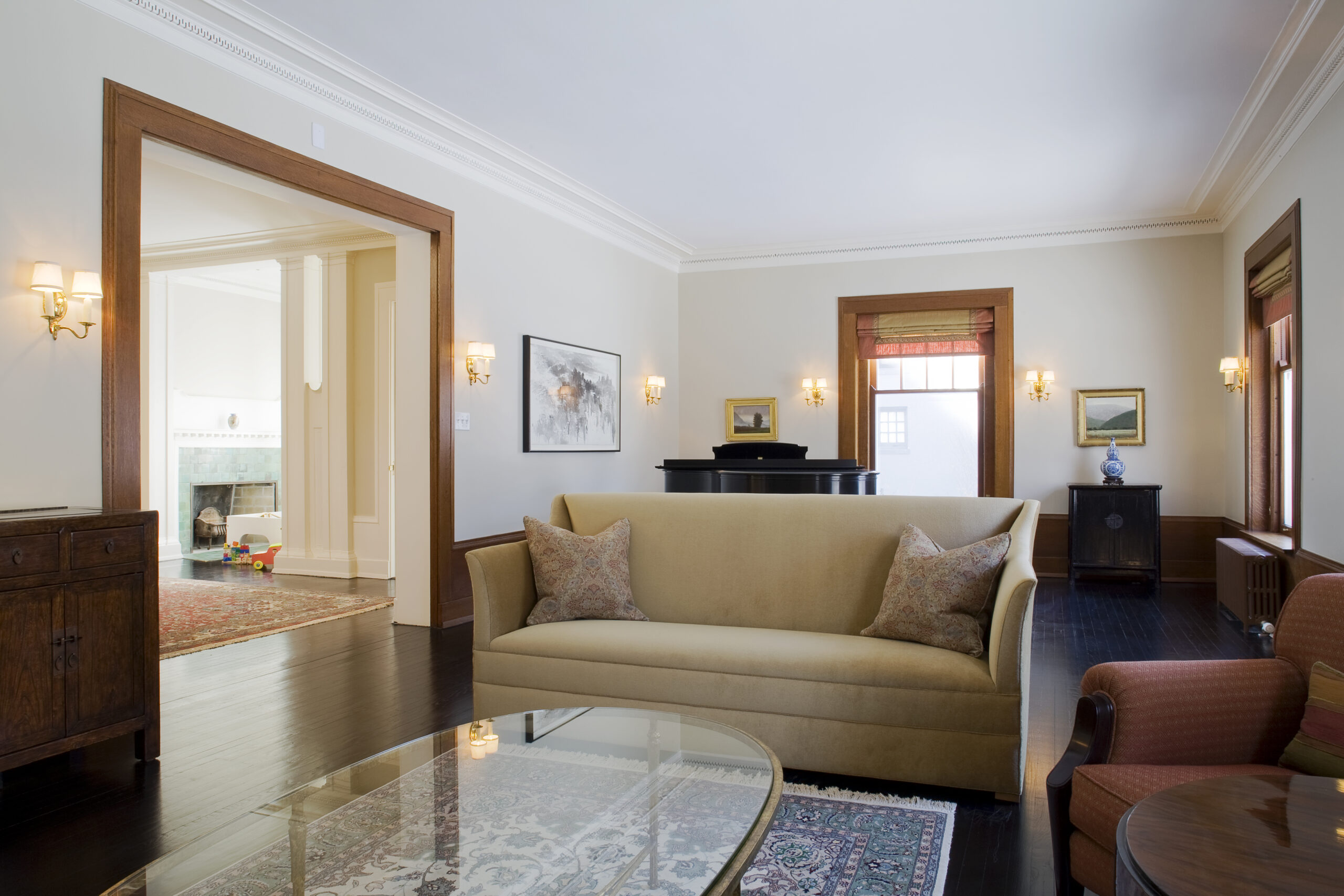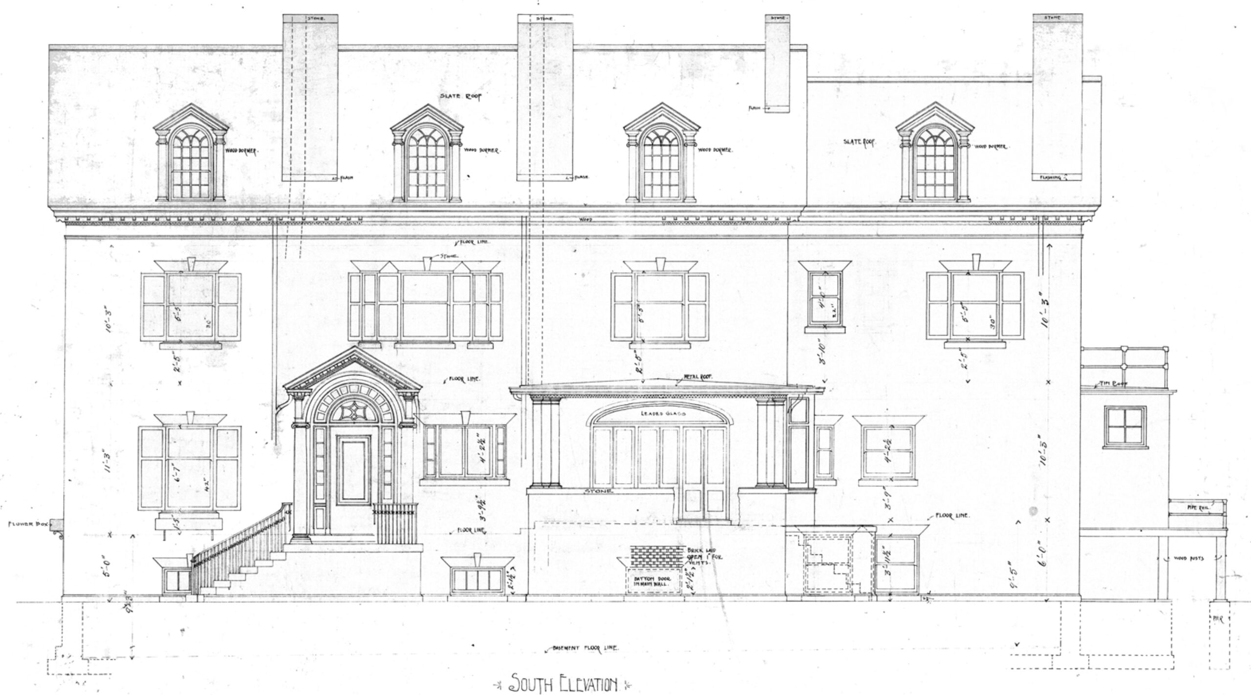 Though the exterior form and details throughout are of the Georgian Revival style, Garden’s Prairie School influence is apparent in the interior planning of the first floor with its open and continuous public spaces that maximize daylight, views and connection to the exterior porches and gardens.