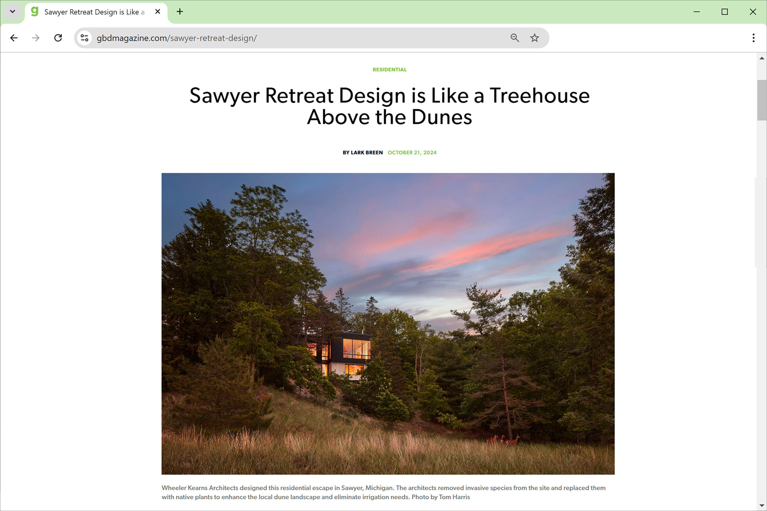 gb&d Magazine: ‘Sawyer Retreat Design is Like a Treehouse Above the Dunes’
