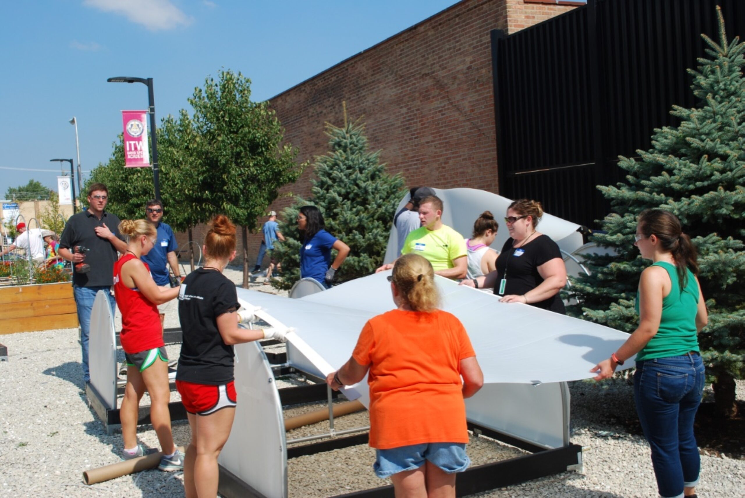 Together with various volunteers from ITW David Speer Academy, Mortensen Construction, USGBC, and GSA, WKA helped to build and install 2 portable solar generators, ten three-season cold frames for growing plants, and several hydroponic growing systems that will be utilized indoors for biology and chemistry classes.