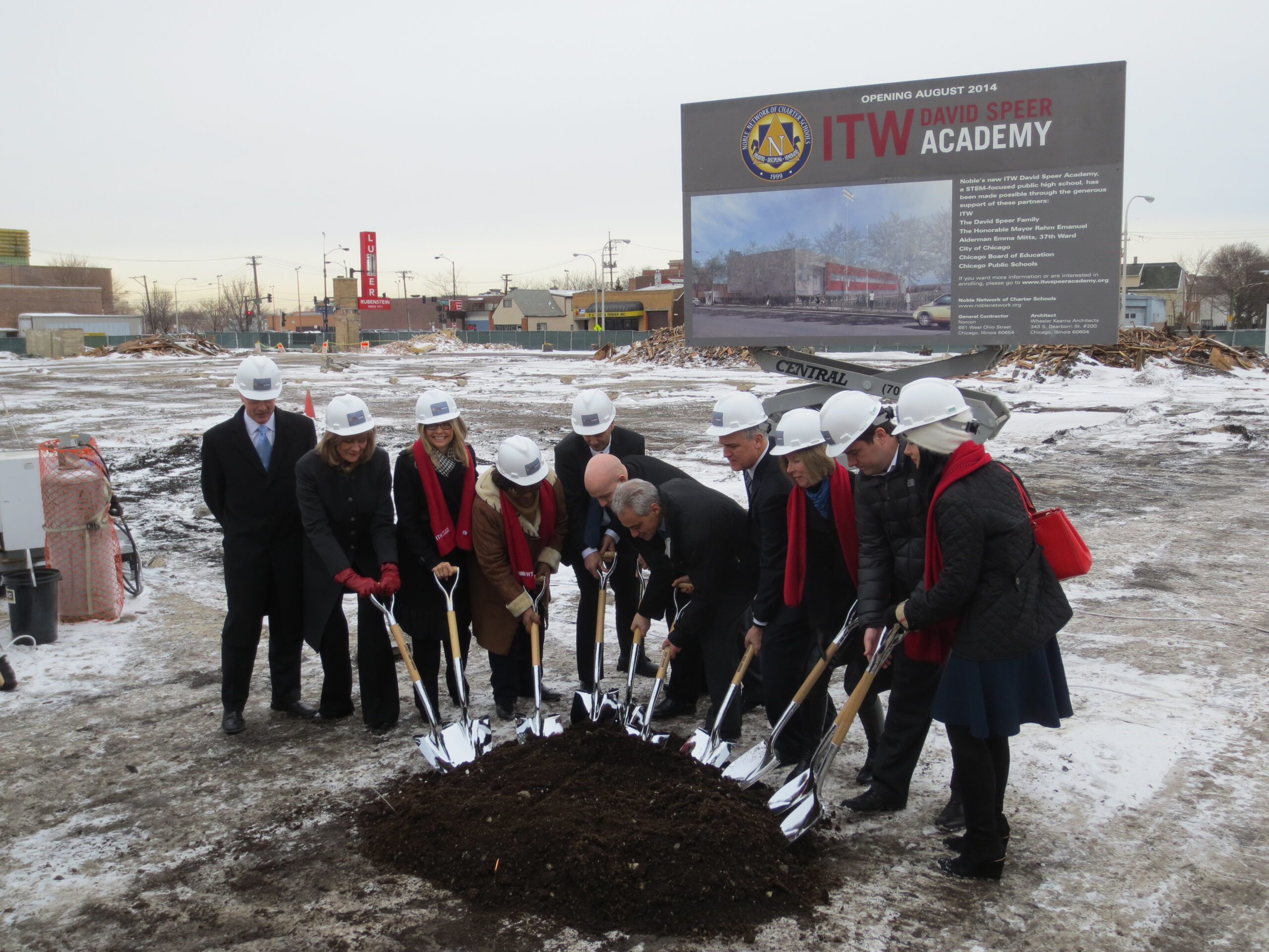 Noah, Tom, and Mayor Rahm Emanuel were some of the supporters at the groundbreaking ceremony for the ITW David Speer Academy on Friday. The Noble Network charter school, located in the Belmont-Cragin neighborhood, is planning to welcome their first class this August. We’re thrilled to be part of the team and will keep you updated as work progresses.