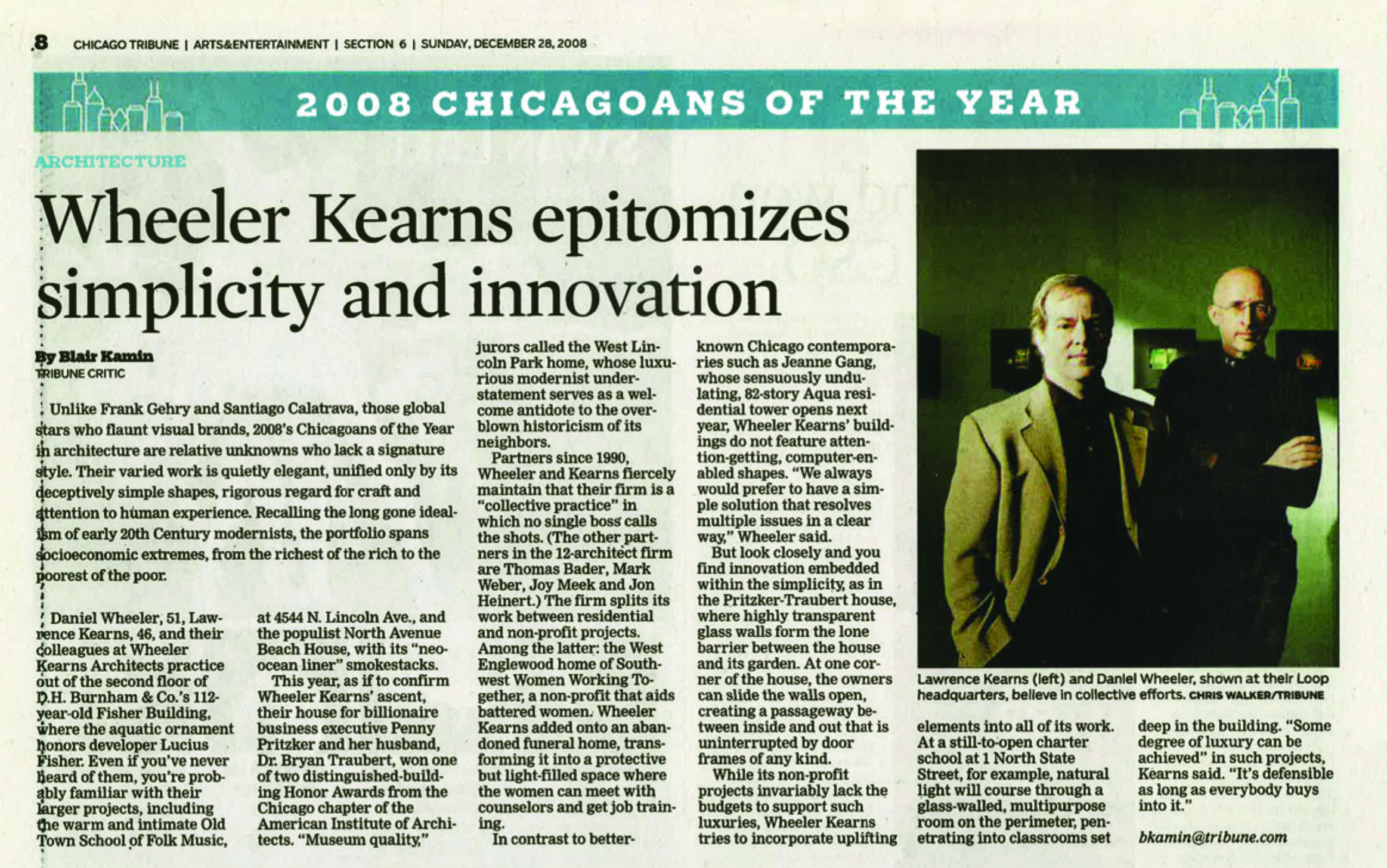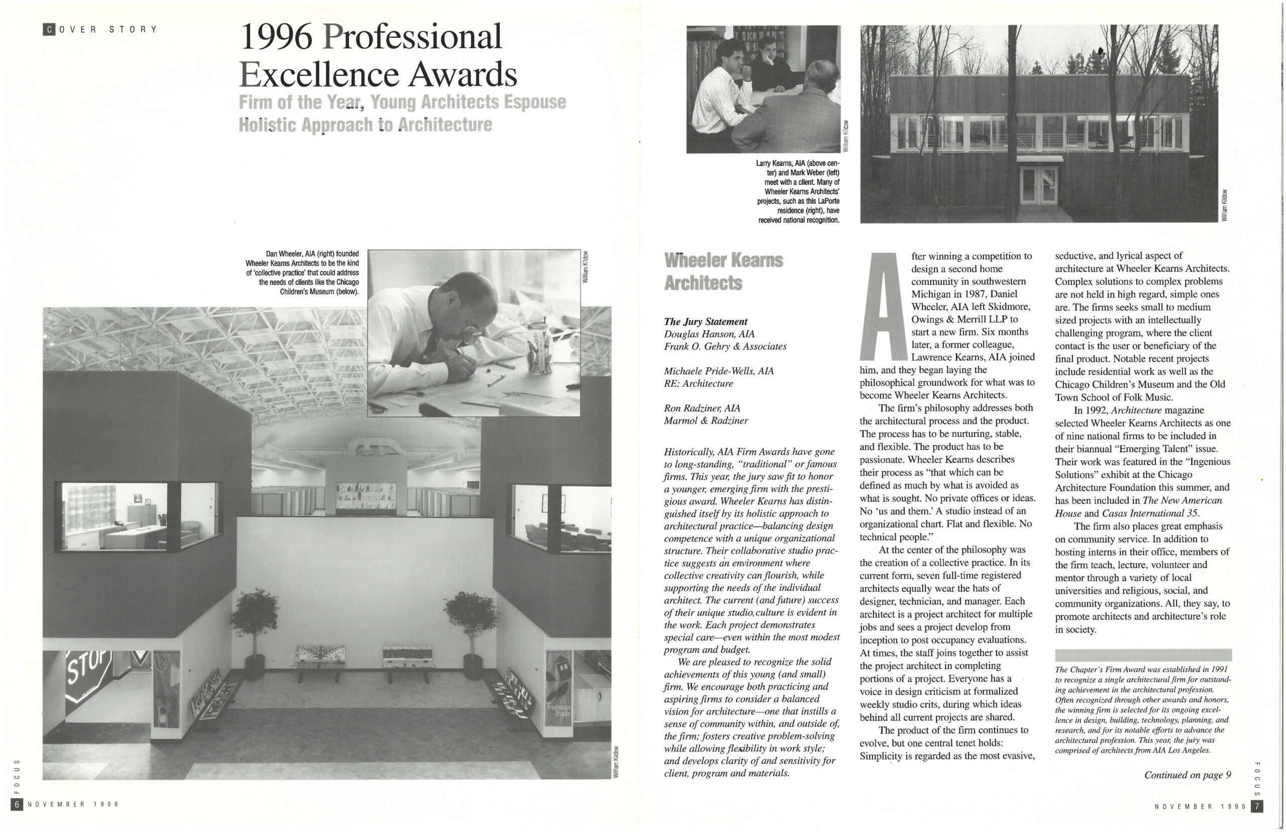 Six months later, a former colleague, Larry Kearns, joined him and they began laying the philosophical groundwork for what was to become Wheeler Kearns Architects.