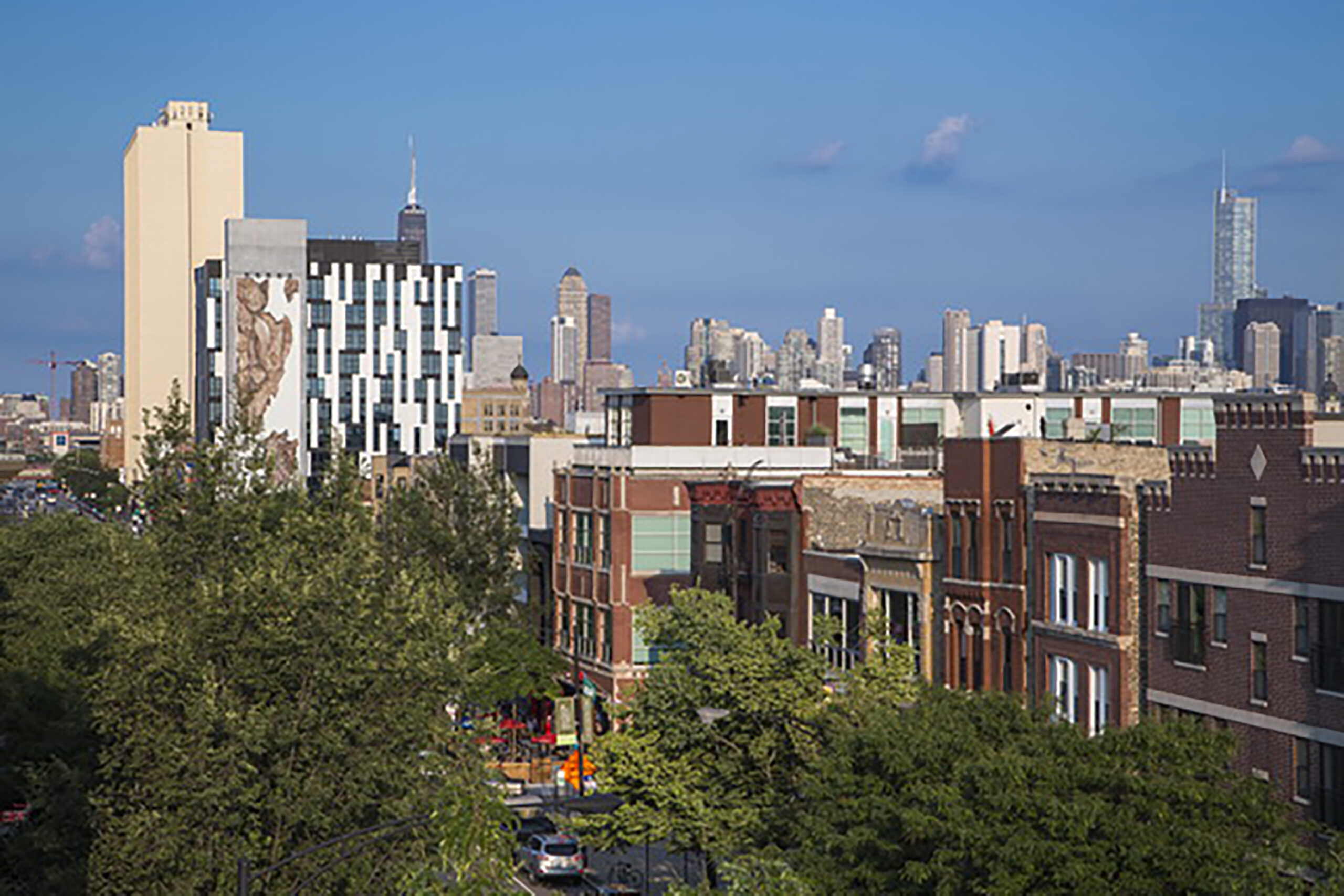 Situated 300 feet from the Blue Line train entrance and steps away from bus routes, 1611 West Division is dedicated to reducing traffic congestion and air pollution in its outreach to mass transit users, bicyclists and pedestrians. The evocative eleven-story apartment building made news this June by filling every unit soon after construction ended, even though it offered no on-site parking or even easily accessible street parking.